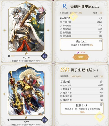 2、在游戏前期输出型都可以用弗里厄,防御型/卖血型都可以用奥莉和巴托斯。拉克涅则是要到PVP和高难度PVE时才显得更有效果。