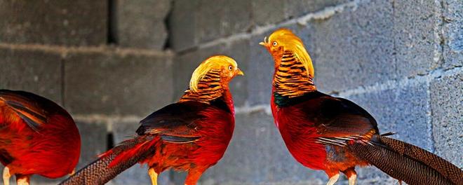 锦鸡是雉科动物里面比较华丽的一类物种,因雄锦鸡拥有一身艳丽的羽毛而闻名世界。当雄锦鸡向雌锦鸡求爱的时候,身上华丽的羽毛都会朝着外面蓬松,让彩色的羽毛盖住头部,雌锦鸡就会被雄锦鸡一系列炫耀的动作和绚丽的羽毛搞到眼花缭乱,从而达到求偶的目的。