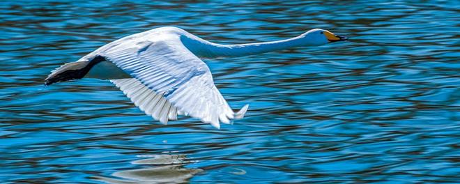 天鹅是雁族、天鹅属的鸟类,属于游禽,是国家二级保护动物,也是鸭科中个体较大的类群,其颈部修长,超过体长或者是和身躯等长,嘴基部高而前端缓平,尾短,且圆;尾羽二十枚到二十四枚,蹼较大,但后趾不具瓣蹼。该鸟类喜欢群栖在沼泽地带以及湖泊,以水生植物为食,偶尔也会吃一些软体动物和螺类。