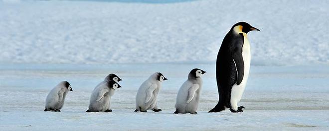 企鹅能在严寒的气候中生活以及繁殖。在陆地上它就像身穿燕尾服的西方绅士,走起来,摇摇摆摆的;当遇到危险时,就会连跌带爬,狼狈不堪。它那短小的翅膀成为了一双强有力的“划桨”,游速可达到每小时二十五千米到三十千米,一天可游一百六十千米。