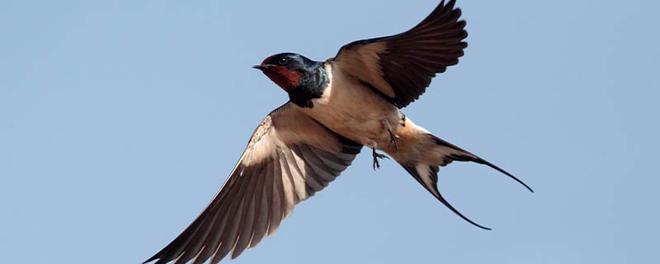 燕子是雀形目燕科七十四种鸟类的一个统称,其体形较小,翅膀比较尖且窄,足弱小,凹尾短喙,羽毛并不是很多,羽衣单色,或是带有金属光泽的绿色或是蓝色,大多数种类两性是比较相似的。该鸟类会消耗大量的时间在空中捕捉害虫,是最灵活的一种雀形类,主要以苍蝇、蚊子等昆虫为主。