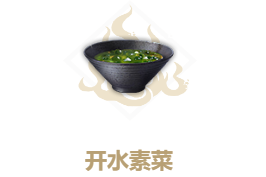 3、开水素菜作用描述:角色食用增加饱食度和灵气,并增强防御穿透力,宠物食用后增加饱食度和灵气。