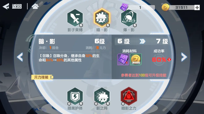 召唤分身,继承自身50%的生命和最高88%的其他属性。