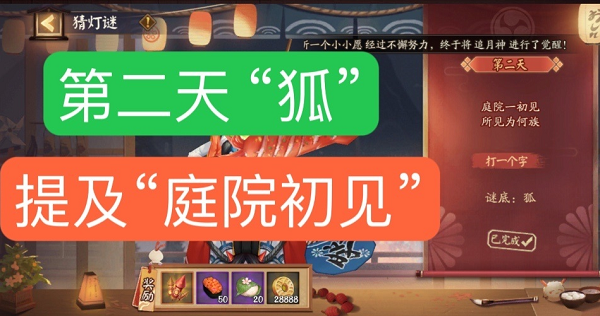 阴阳师猜灯谜2022活动花彩庆猜宵第二天谜语是:庭院一初见,所见为何族(打一个字),那么阴阳师灯谜庭院一初见所见为何族答案是什么?游乐园小编为您带来阴阳师灯谜庭院一初见所见为何族答案攻略。