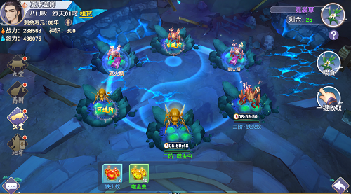 2、每种药草都有自己不同的成熟时间,时间一到即可收获。而药草的作用也很简单,用来炼制丹药。