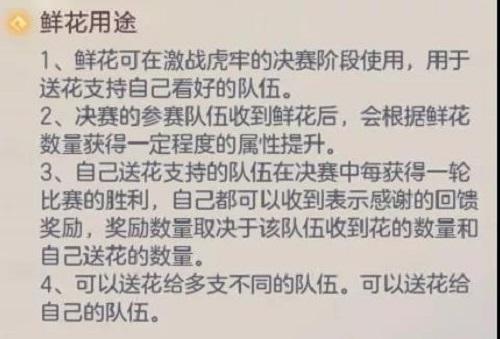 对中意队伍送花可以根据倍率和胜负情况返还元宝。(详细的可以看第六点鲜花机制)