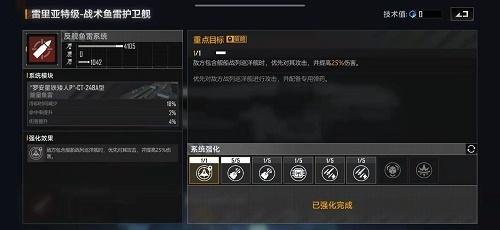 3.推荐加点:中后期作战用优先点重要目标策略,然后选择冷却和伤害,最后选择暴击等加点,和对舰型雷里亚特一样,只要点满输出即可,闪避加点如果点数不够的话完全可以放到一边,雷里亚特的站位在中排也相对安全,除非舰队里只有雷里亚特这一种护卫,否则不会损失得很快。