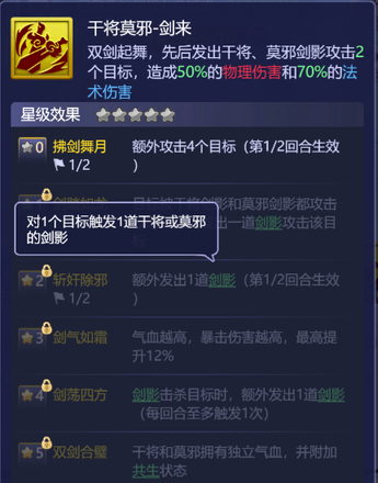 1X:目标被干将和莫邪剑影都攻击过时,额外发出1道剑影攻击该目标