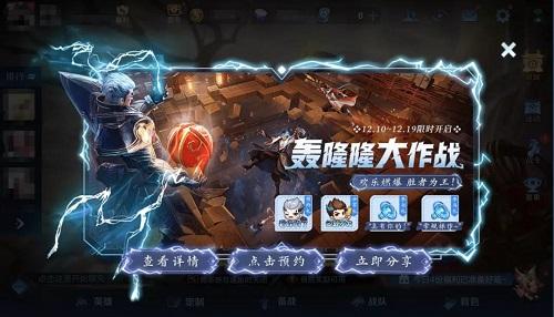 3、分享奖励:活动期间,进入大厅轰隆隆大作战入口分享玩法,即可立即领取分享奖励。注意需在【玩法预约&分享】活动期间领取奖励,轰隆隆大作战玩法正式开启后将不能再领取。