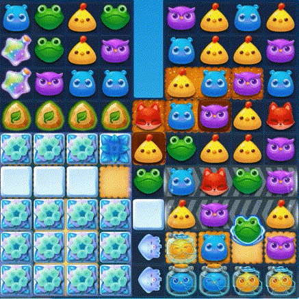 第四步:三消清除雪块,雪块消除后借助三消消除配合直线特效等辅助消除制作蛋糕,剩余蛋糕制作进度齐头并进。
