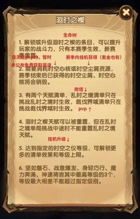 有专属的生命树(洄时之楔),挂机获得瓶子(时空尘屑)和升级等级(时空之仪)的经验(时空之序)