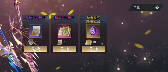 4、基础知识碎片、精华知识碎片和秘典魔石等用于兑换高级秘典的材料,都可以用低等知识碎片兑换。