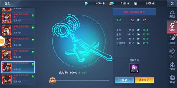 装备强化对于玩家老爷们应该是比较熟悉的培养方式了,游戏内几乎各个玩法都会爆出强化石,当我们攒够足够的强化石后,只需要点击【自动强化】,就可以享受战力飞升的快感了