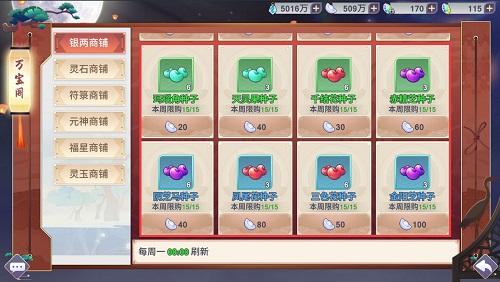 1、银两商铺:首先百里兄要说一点,银两商铺是所有商店中性价比最高的,如果资源足够的话,推荐搬空。因为银两的获取途径众多,并且商铺中的物品大都非常实用。