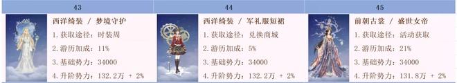 爱江山更爱美人手游时装升阶排序图能直观的反映出获取途径、游历加成、基础势力、升阶势力,因此游乐园小编为您带来爱江山更爱美人手游时装升阶排序图最新,让大家有一个清楚的了解。