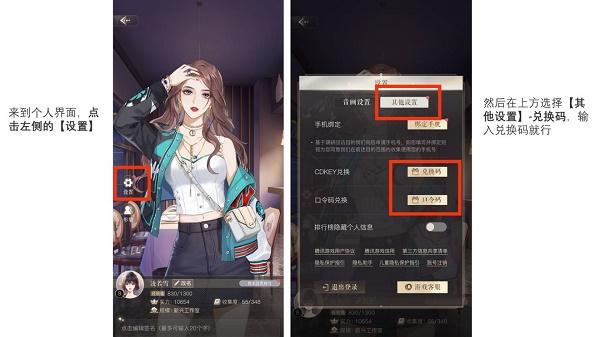 2、兑换方法:来到个人界面,点击左侧的设置按钮,然后在上方选择其他设置-兑换码,输入兑换码就行了。