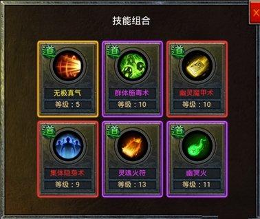 对于想要玩道士的玩家,建议优先升级灵魂火符,其次升级幽冥火;幽冥火有几率给敌人施加中毒效果,配合灵魂火符对附带中毒效果的目标可以造成额外伤害。幽灵魔甲术和集体隐身术作为防御技能,提升防御和无敌时间,更是挑战高等级BOSS的最好选择。推荐技能组合顺序如下图: