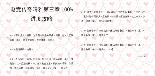 3、3-1~不入虎穴~晴雅,这些天~你还是没~团队运输【蠃】~我能做什么~拒绝晴雅~为了赢~电竞之道~放开她~晴雅,你没事~你永远是~团队椰岛【输】~团队死亡【输】~结局3
