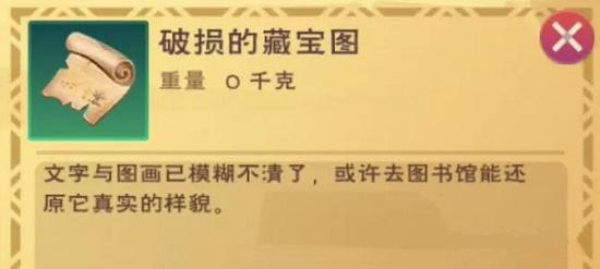 破损的藏宝图经过图书馆—宝图破译,即可获得藏宝卷封。