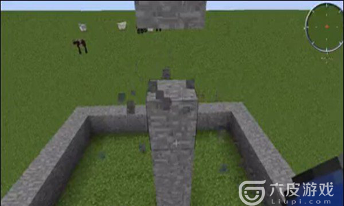 3.堆好一个合适的柱子以后,把柱子的顶端和底部的石头都需要打掉,这样在最顶上的石头会飘在空中。