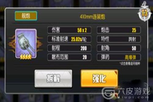 410mm三式炮又称连装炮,是目前游戏中,玩家普遍使用的炮击装备,410mm连装炮T3可以达到25.02s/轮的射速,伤害超高。