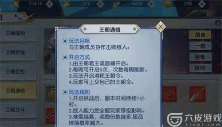 王朝通缉是一个团队副本,只有属于同一王朝内的成员才可进入并肩战斗。副本内共有四个难度的boss:简单、一般、困难、炼狱,击杀的boss难度越高,那么获得奖励的份数以及极品奖励的可能性也就越大。因此,大家在挑战这个副本的高难度boss时,可以多寻找一些成员进行挑战。