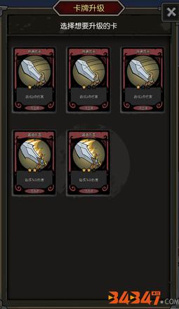 我们再次选择铁匠铺,选择一张一星的普通攻击免费升级。升级完毕之后便退出,我们的钱主要拿来在老猫商店进行额外卡牌的购买,故此不再花费金钱升级卡牌。