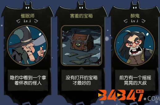 选择道路上大致有五种,第一种是最左边边也是最常见的遇见怪物的战斗选项。第二种是类似于仙女祝福的增益选项。第三中是能够通过左上角金钱数量进行交易的商铺。第四种是能够免费获得卡牌的宝箱。起商铺分四种:
