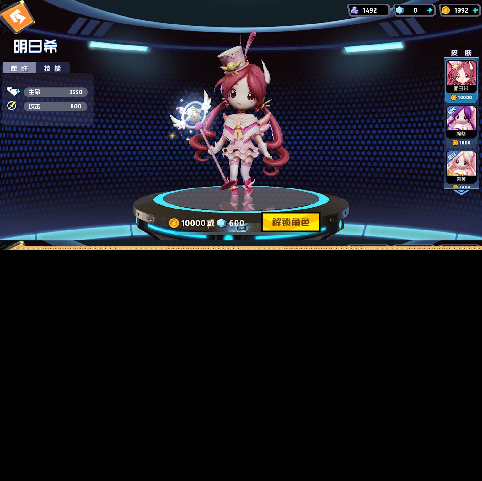 明日希:自述 除此登台,请多多关照 萌萌哒的偶像歌手形象,这Q版的形象让我不禁想起另一款手游的一个英雄皮肤~
