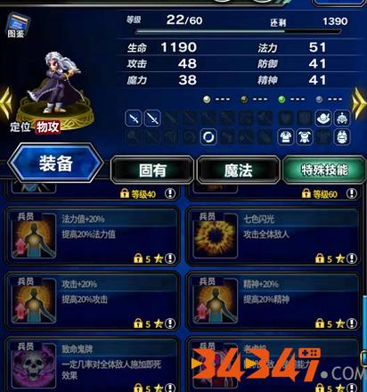 魔法能力:此兵员完全不会魔法,所有魔法种类的等级均为0