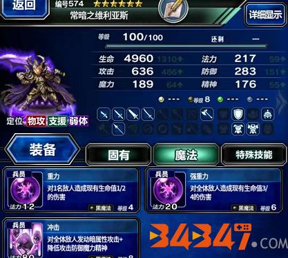 掌握魔法:常暗和王土一样掌握魔法很少,只有重力和强重力,冲击!冲击在对全体敌人造成暗属性魔法伤害的同时,还能降低敌人全部基础属性3回合(45%)