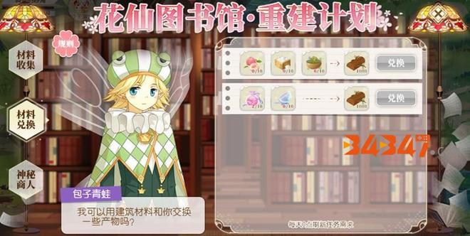 图书馆的重建共有三个步骤:材料的收集、材料的兑换和神秘商人。在大家收集到产物后,可以通过这些产物来兑换材料,与其他玩家一起建设图书馆,之后就可以在神秘商人处领取对应数量的神叶。