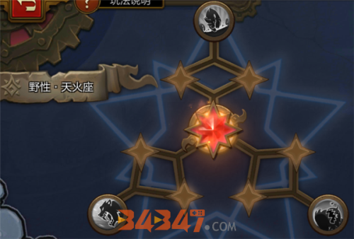 用野性·天火座为例子,这个星盘的主要作用就是使野性系的宠物为主要核心的连接技,然后以此大幅度的提高角色和宠物的属性,并且连携技附近的两个辅星点亮还可以强化该连携技。