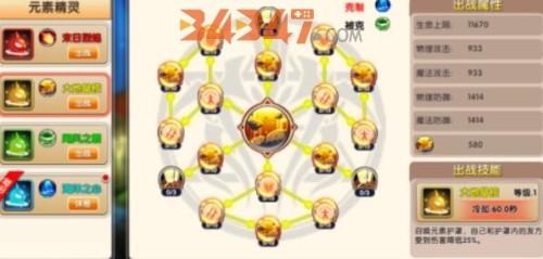 每一个元素精灵都拥有属于自己的星盘,星盘中的每一个点位都可以用来成长,但是攻击、防御、生命的增加是四个精灵一起共用的。