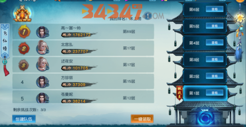 2、玩家在挑战飞仙塔的时候不止可以单人挑战还可以多人一起挑战,和好友组队挑战的话获胜的几率会更大一点。