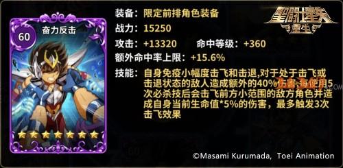 传说圣斗士·星矢具有极高的输出能力,能够降低目标物理防御、控制目标1秒,其觉醒技会优先攻击前排攻击最高者,即主力副T(针对传说圣斗士·星矢)。如果双方队伍都有传说圣斗士·星矢上场,就会造成互相威胁的局面,此时,究极之力的搭配便会显得尤为重要。