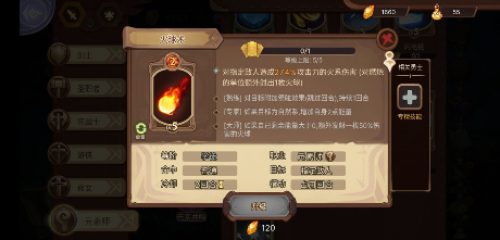元素亲和,符文能量,火球术,带来20%命中,50%额外相克伤害,每回合所有技能冷却减1,与眩晕能力