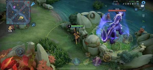 3、孙悟空的二技能如果借助跳板,能比平时跳得更远(需要同时拖动方向轮盘),同时当冲锋路径上遭遇敌人会借力腾空跳跃,经常能借助小兵或野怪增加位移距离,也可借助敌方前排来突进敌方后排。