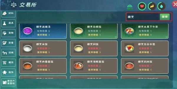 在交易所搜索 精烹 能看到本次更新炊鼎能制作的食物