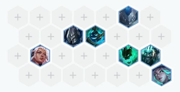 棋子:赫卡里姆(人马)、诺提勒斯(泰坦)、瑟庄妮(猪妹)、锤石、厄运小姐、德莱文、贾克斯、芮尔、佛耶戈