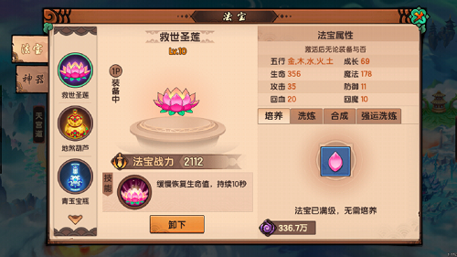最好两个法宝都有木属性,这样子冷却没那么长,轻松很多