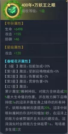 召唤出的妖眼和魔树都会继承携带者的高攻速,妖眼和魔树都可以造成对方最大生命值伤害,妖眼有控制,魔树使对方中毒。携带者挂掉时,也可对对方造成最大生命值伤害。