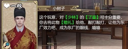 比如这个任务,前往“河南-少林寺”找到“了鉴”【赠与】“来历不明的证据”,之后将会发生战斗,胜利后回京城复命即可完成任务,“眼线”每月能带来大量声望,这份文书上详细记录着某人个入资料和生平还有其不为人知的把柄,令人细思极恐。