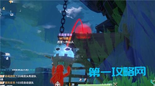 首先把水核体,放到这个石头顶上。然后飞到吃吃花那里,走到下图所示的这个位置。