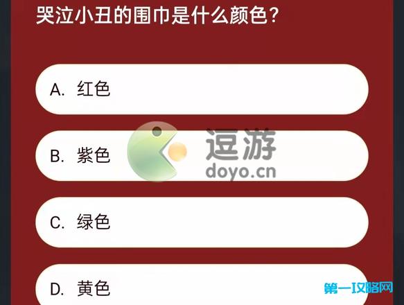 哭泣小丑的围巾是什么颜色?每日首次晒成绩单或将活动分享至微信朋友圈可分别额外获得1次答题机会哦~这就为大家介绍一下哭泣小丑的围巾颜色。