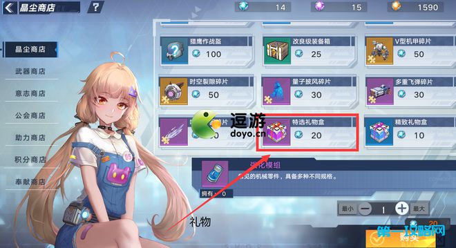 1、获取方式一:晶尘商店和积分商店。晶尘商店20积分可以兑换一个特选礼物盒,积分商店80训练积分可以兑换一个礼物盒。使用礼物盒可以自选一个紫色礼物