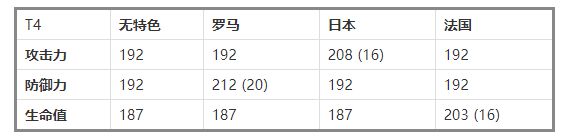 由于罗马提供的5%步防和5%移速实际效果比其他两国好, 所以如果热爱步兵数据的朋友可首选罗马, 但其实步兵最需要的是生命值, 其次才是防, 所以法国也可以参考选择