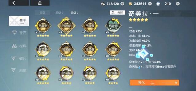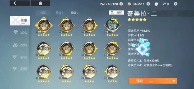 奇美拉万金油,远程可用,如果主养近战,推荐狼四件套 追求暴击最吃香的还是高频率攻击的神格我的玩法是莉莉丝与她的两个工具人= =所以贝贝和少昊带的是两套狮鹫,可以不像我这么玩,我这是想追求极限莉莉丝,最好还是除了莉莉丝以外,再养一个输出,贝贝前排必养,无脑堆生命和防御