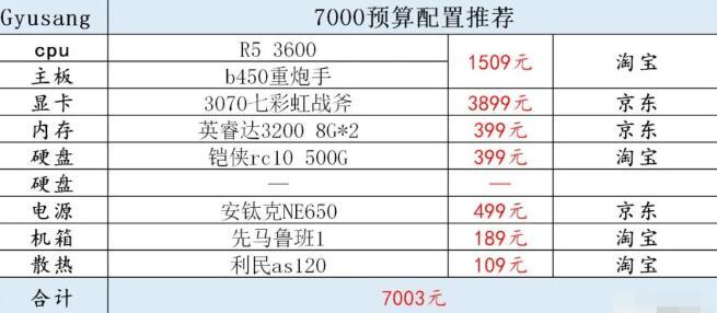 由于30系显卡目前都有溢价,我都是按照首发价格写的配置单,如果不是原价抢到的,把溢价加到预算上