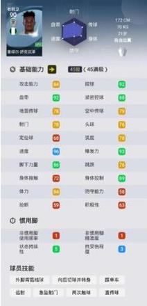 他96+93的速度也足够快而且盘带能力强,但是逆足为1的他在右路就只能进行内切射门(虽然他的射门能力不太强),在左边锋位置传中又受限于不过80的空传。总体来说他会是银球右边前卫最强的候选人之一,但是其他位置可能他竞争力并不够强。
